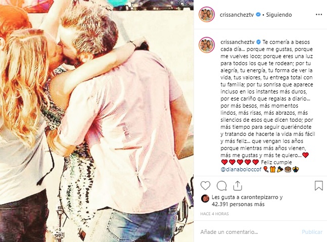 'Por ese cariño que regalas a diario... por más besos, más momentos lindos, más risas, más abrazos, más silencios de esos que dicen todo; por más tiempo para seguir queriéndote y tratando de hacerte la vida más fácil y más feliz... que vengan los años porque mientras más años vienen, más me gustas y más te quiero... Feliz cumple @dianaboloccof', escribió Cristián en su red social.
