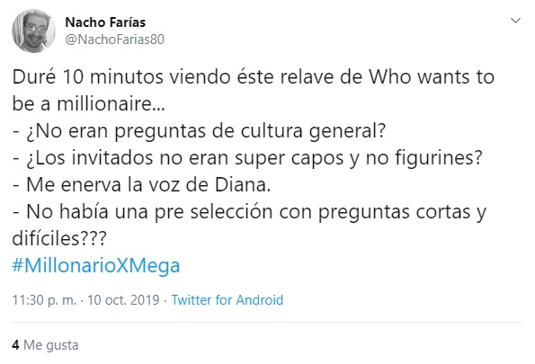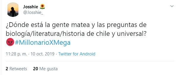 Si bien "¿Quién quiere ser millonario" obtuvo éxito de sintonía, siendo lo más visto y comentado de la noche, en redes sociales no estuvo exento de críticas. En Twitter fueron varios los que aseguraron que las preguntas eran 'fáciles' y de 'farándula', más que de cultura general.
