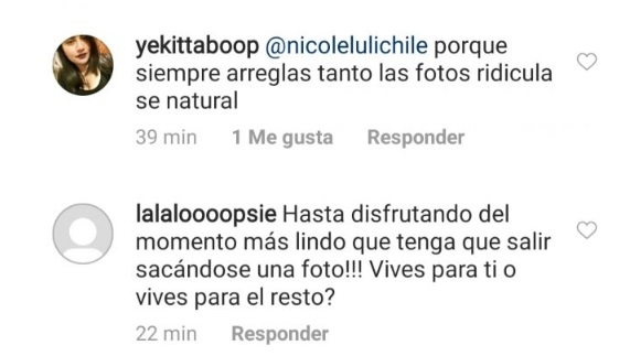 Tanto así, que a las horas Nicole tuvo que desactivar sus comentarios en Instagram.