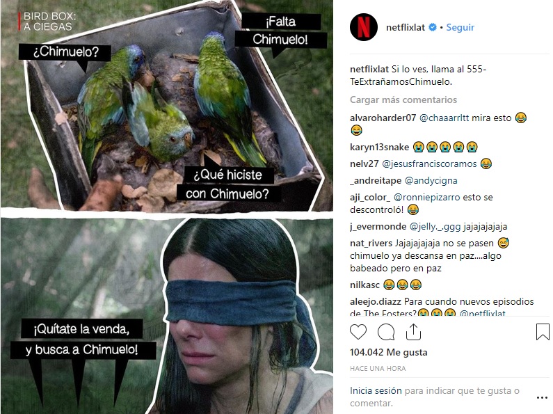 Y a través de la cuenta oficial de Latinoamérica, la plataforma de streaming subió un meme que mezcla lo mejor de dos mundos: Chimuelo y Bird Box, una de las películas más vistas en Netflix.