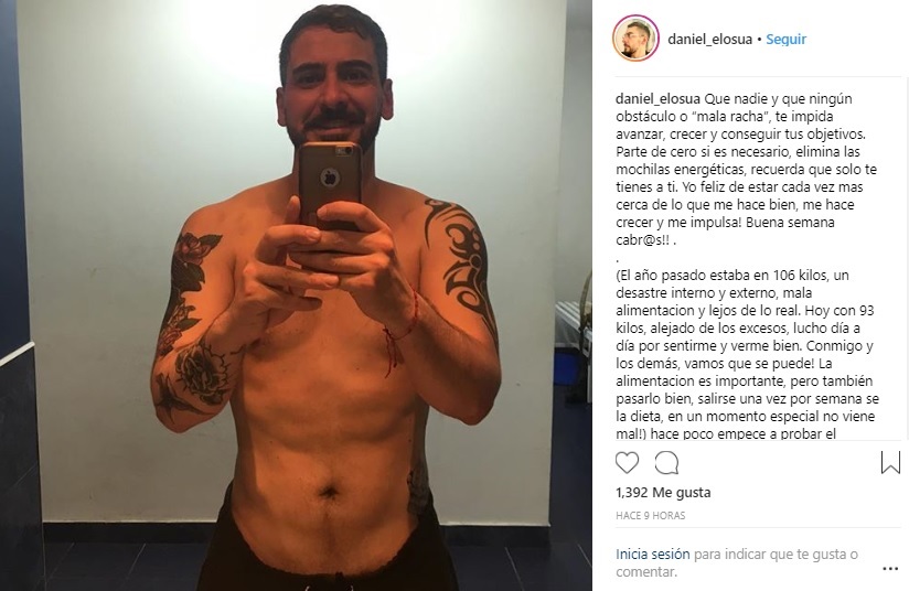 "Que nadie y que ningún obstáculo o “mala racha” te impida avanzar, crecer y conseguir tus objetivos. Parte de cero si es necesario, elimina las mochilas energéticas, recuerda que solo te tienes a ti. ¡Yo feliz de estar cada vez más cerca de lo que me hace bien, me hace crecer y me impulsa!", escribió Daniel para acompañar la foto de su marcada figura.