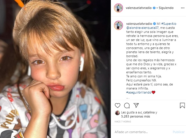 'Mi #SuperAlo, me cuesta tanto elegir una sola imagen que retrate la hermosa persona que eres, un ser de luz que vino a iluminar a todo tu entorno y a quienes te conocemos. Una genia de otro planeta llena de talento, alegría y bondad'.