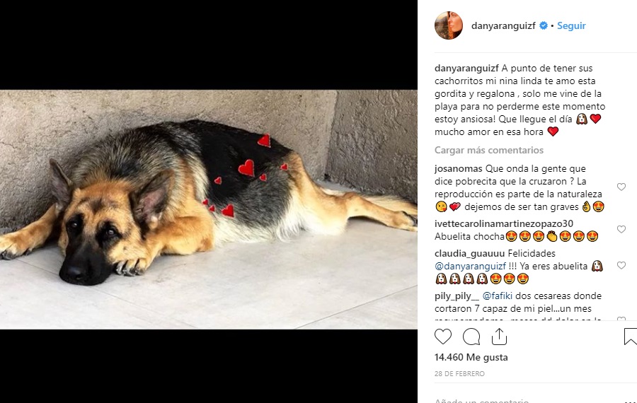 Esto porque su perrita Nina, una pastora alemana, se encontraba a punto de dar a luz. De hecho, la ex chica "Mekano" estuvo compartiendo imágenes previas al parto como 'mamá' orgullosa, e incluso confirmó que ya es "abuela" de los nuevos cachorritos.