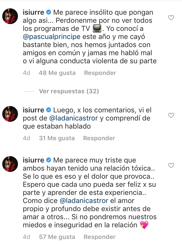 Por eso, Isidora volvió a comentar, pero ahora sabiendo las dos versiones. "Me parece muy triste que ambos hayan tenido una relación tóxica. Espero que cada uno pueda ser feliz por su parte y aprender de esta experiencia", fue parte de su mensaje.