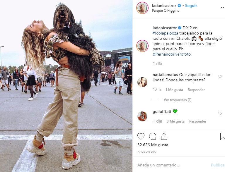 “Harta gente me ha preguntado si se puede venir con perro al Lollapalooza, pero no (…) Tuve que sacar con mi siquiatra un papel de que mi perro es mi apoyo emocional y que tengo que andar con él en todas partes”, explicó la modelo.
