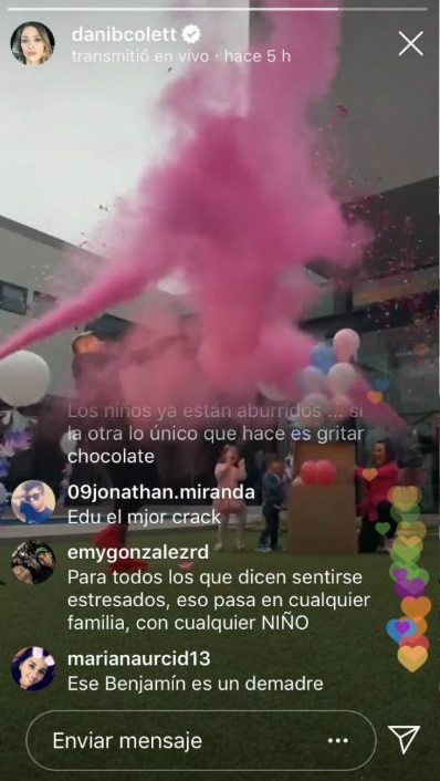 Colett hizo una transmisión en vivo y compartió algunas historias donde juega con la incertidumbre, mostrando una caja con globos y tiza, revelando finalmente que se convertirá en madre de una niña. ¡Felicitaciones!