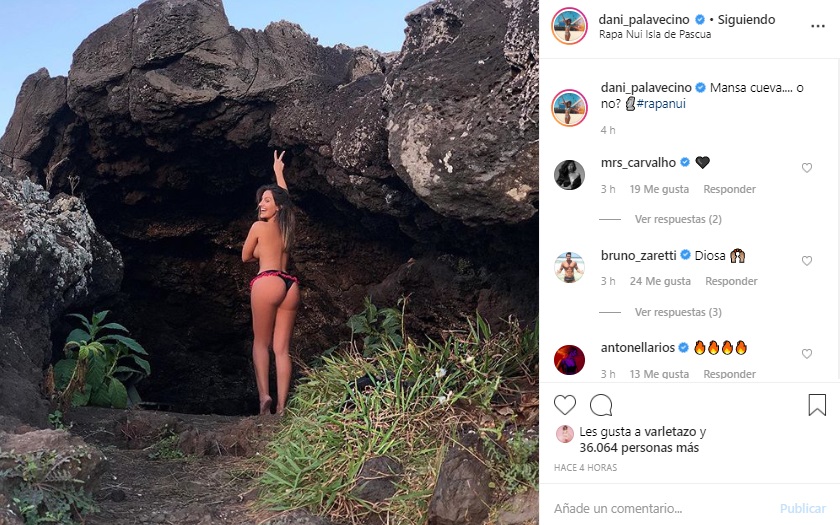 "Mansa cueva.... o no? 🗿#rapanui", escribió Daniela para acompañar la imagen que subió a su cuenta de Instagram.