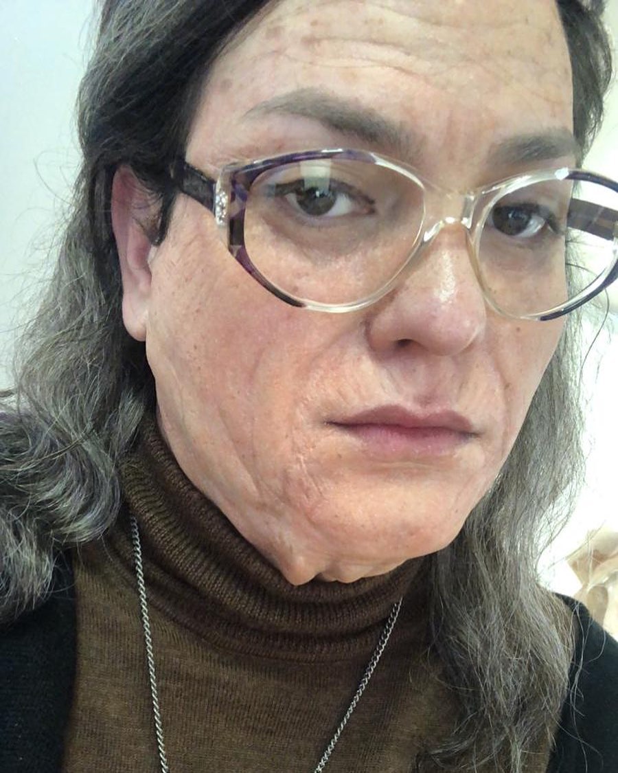 Pero esta no fue la única transformación a la que debió someterse la intérprete nacional. A través de su cuenta de Instagram, Daniela se mostró en la piel de su personaje, pero con varias décadas más en el cuerpo.
