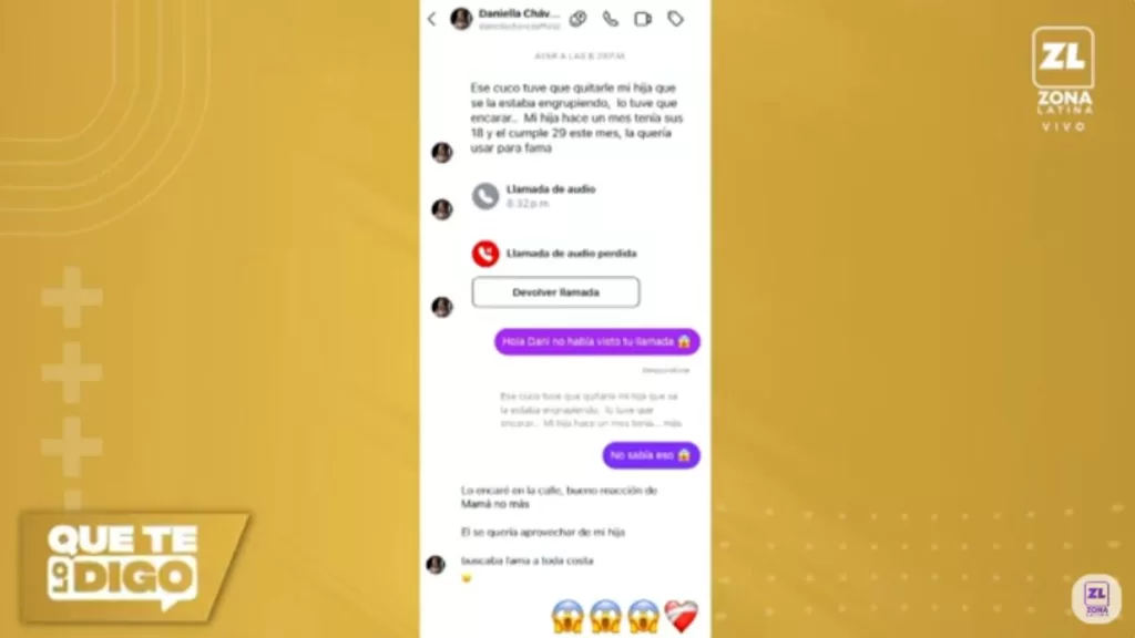 El programa de farándula Que te lo Digo se comunicó con el influencer chileno para conocer su opinión sobre los dichos de Daniella Chávez.