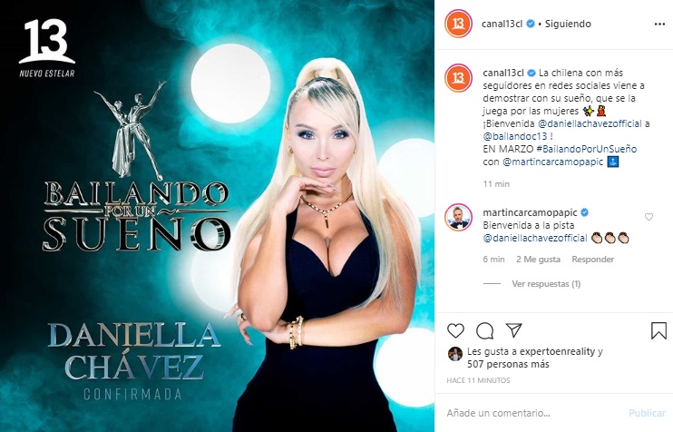 'La chilena con más seguidores en redes sociales viene a demostrar con su sueño, que se la juega por las mujeres', se lee en el post compartido por Canal 13 para confirmar a Daniella.