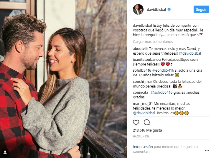 El cantante español David Bisbal confirmó a través de su cuenta en Instagram que llegará al altar junto a su novia, la venezolana Rosanna Zaneti, con quien inició su romance en el 2016.
