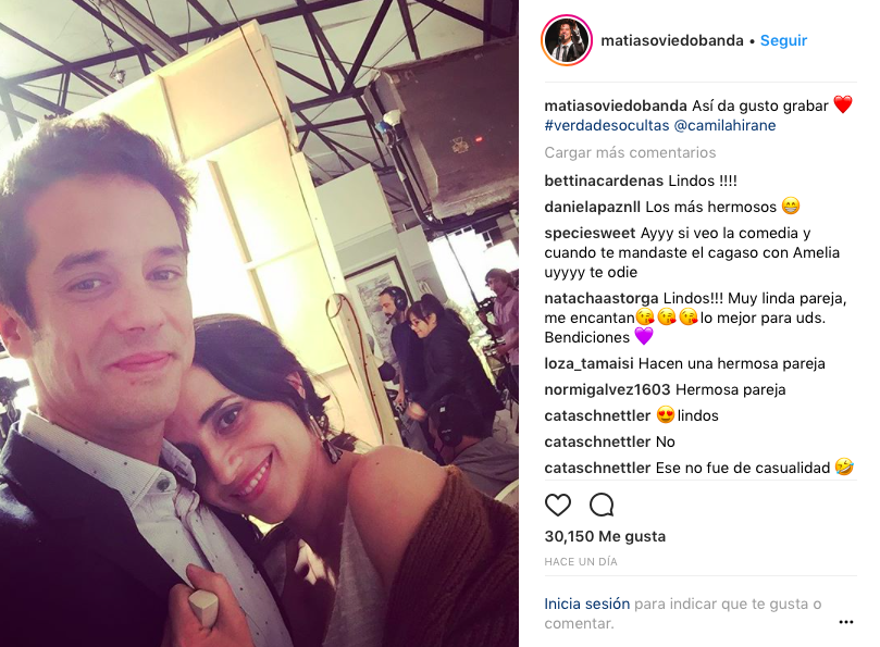 Ahora fue Matías Oviedo, quien quiso compartir una romántica postal de su trabajo juntos. A través de su cuenta de Instagram, publicó una foto de ambos en el set de grabación de "Verdades ocultas".