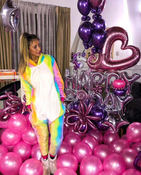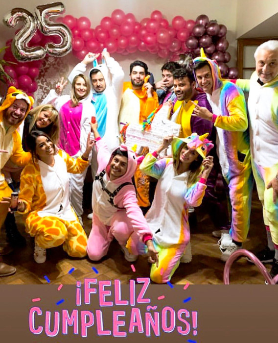 Además, la rubia y todos sus invitados vistieron unos enteritos de unicornio de múltiples colores. “Gracias a todos ustedes arranqué mis 26 años de la mejor manera. Me siento muy, muy, muy afortunada de tener la familia, amigos y novio que tengo, me hacen muy feliz. Y gracias a todos ustedes por sus mensajes y saluditos”, escribió.
