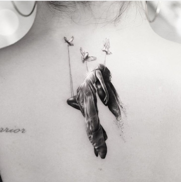 'La luz del interior representa la fuerza interior necesaria para el cambio y las palomas, al levantarla, simbolizan el alcance de un estado superior de conciencia', explicó en su Instagram el tatuador de Los Angeles.