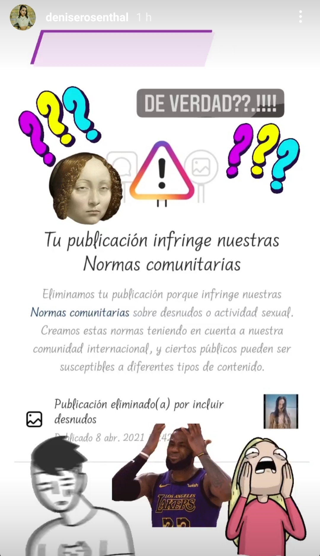 Como ya decíamos, Denise Rosenthal había compartido primero la siguiente foto que Instagram le censuró.
