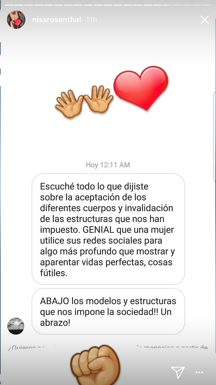 Aquí, otro mensaje que compartió en su Instagram stories, de un seguidor que la apoyó: