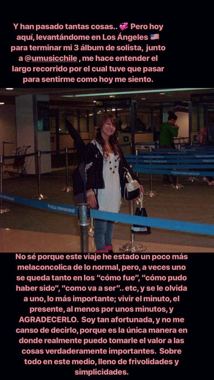 Hoy se encuentra en Estados Unidos realizando un nuevo trabajo musical y por redes sociales expresó su entusiasmo.