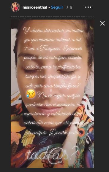 “Chiquilles, piedad, piedad, mírenme, mírenme, estoy toda mojada, acabo de bajarme del escenario, me tengo que secar, cuidarme, no me puedo llegar y sacar fotos al tiro, por favor, tengan piedad de mí”, partió relatando en sus historias de Instagram.