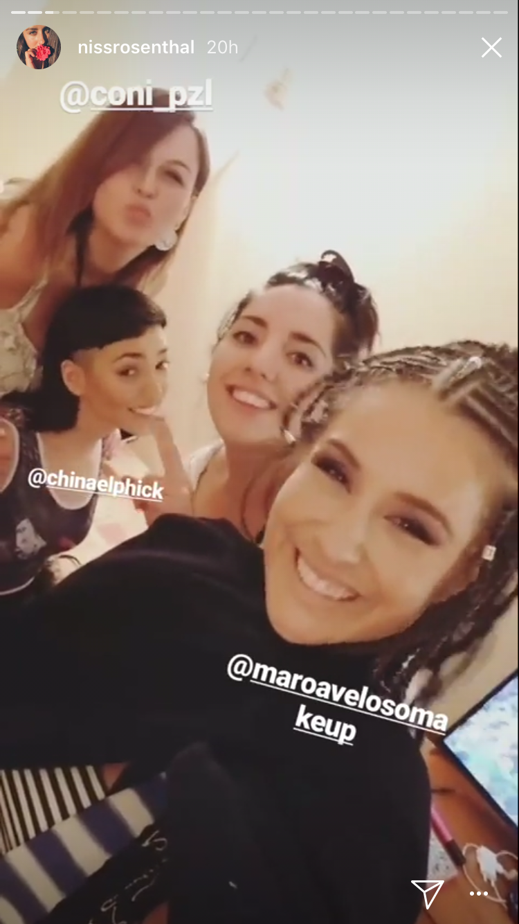 También destacó su peinado, donde lució un trenzado en todo su cabello, que tenía las puntas en tono blanco, junto a pequeños accesorios por toda su cabellera.