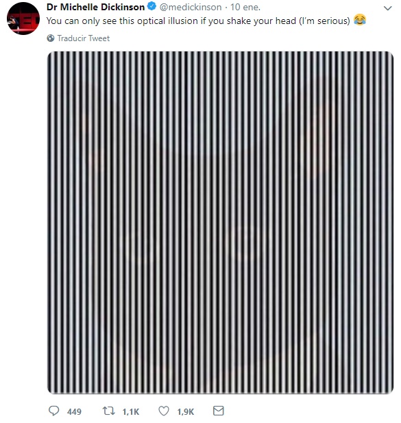 Y es que por lo que se puede leer en redes sociales, la imagen de líneas verticales blancas y negras requiere que muevas la cabeza de un lado a otro para ver la imagen oculta.