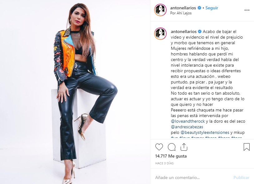 Luego Antonella se defendió explicando que "esto era una actuación, webeo puntudo, pa’ picar, pa’ jugar y la verdad era evidente el resultado. No todo es tan serio o tan absoluto, actuar es actuar y yo tengo claro de lo que quiero y no hacer".
