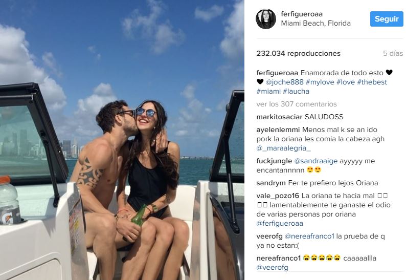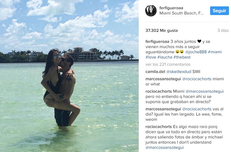La ciudad de Miami, en Estados Unidos, es el escenario de las celebraciones por los tres años que la pareja ha disfrutado juntos. Así lo han mostrado en redes sociales, donde la chilena, hija del entrenador de fútbol Marco Antonio Figueroa, ha publicado románticas imágenes. "3 años juntos y se vienen muchos más a seguir aguantándome", escribió Fernanda en una de las fotos que compartió en Instagram.