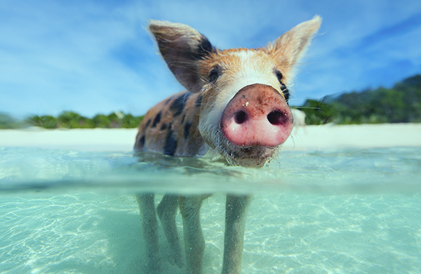 Existe una hermosa playa en el caribe, en donde además de peces, hay cerditos.