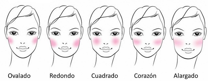 Aunque las variantes son muy sutiles, la siguiente imagen muestra, según la forma de tu rostro, donde tienes que colocar el producto y luego difuminarlo hacia atrás. Aplícalo mientras marcas pómulos y después difumina hacia el exterior.