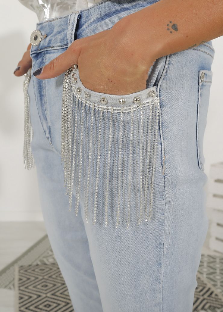 Lejos de los jeans rotos o desarreglados, los que serán furor en la primavera 2020 serán aquellos pantalones customizados, ya sea con plumas, flecos, brillos o tachas.