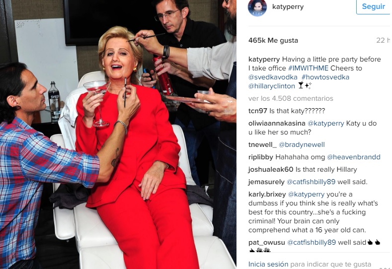 Recordemos que Katy Perry ha apoyando publicamente a Hillary Clinton, quien es candidata a la presidencia en Estados Unidos.