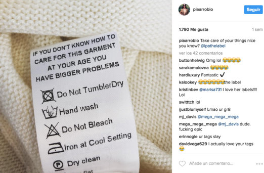 Por eso si estás en Estados Unidos y te compras alguna prenda de Lara, fíjate en las instrucciones de lavado, en una de esas te encuentras con más de alguna sorpresa.