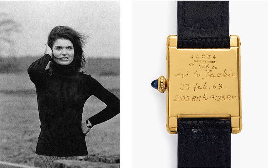 Se trata de un objeto de la marca Cartier fabricado en 1962, que fue obsequiado a la ex primera dama de Estados Unidos sólo unos meses antes del asesinato de John F. Kennedy, por su cuñado, el Príncipe Stanislaw Radziwill. En su reverso tiene grabada la fecha “26 de febrero de 1963”.