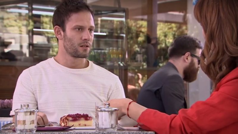 Se trata específicamente de la vestimenta de uno de los extra que aparecen en la escena donde Alonso y Ágata conversan en un café. El sujeto sentado atrás luce una chaqueta que al parecer le queda chica, pues está descosida en una de sus mangas.
