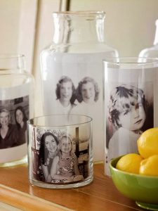- Otra idea muy interesante para regalar fotos, es convirtiendo vasos y frascos de vidrio en marcos de fotos. ¡Mira!