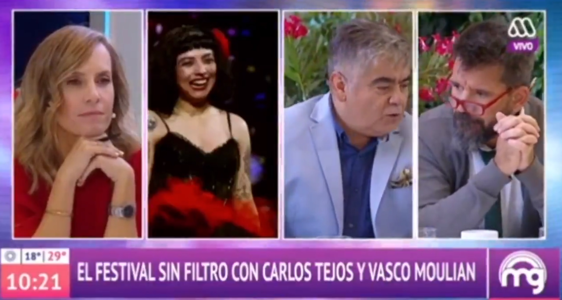 A pesar de que no es canal oficial, Mega se ha dedicado a través de su matinal "Mucho gusto", de comentar el Festival de Viña del Mar, donde invitaron a Vasco Moulian y Carlos Tejos, para hablar de los artistas que se presentarán en la Quinta Vergara.