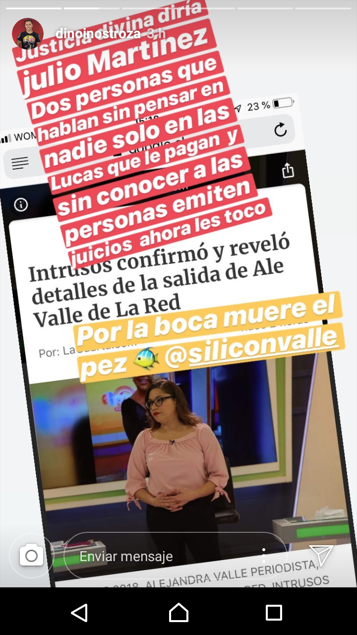 Vía Instagram Stories, Dino Inostroza aplaudió la salida de La Red de Catalina Pulido y Alejandra Valle, ambas integrantes del programa 'Intrusos'