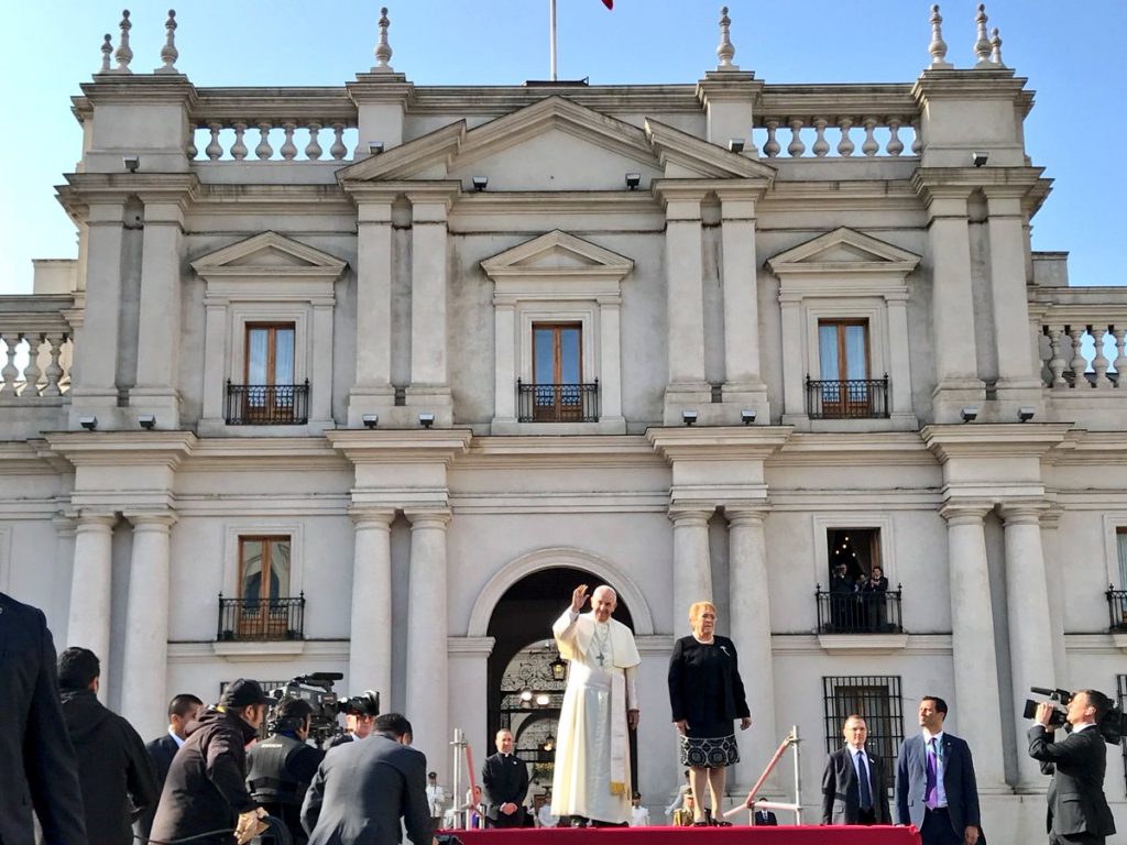 La mañana de este martes, el Papa Francisco se reunió con la presidenta Michelle Bachelet en el Palacio de La Moneda donde recibió los honores correspondientes a su visita como jefe de Estado.