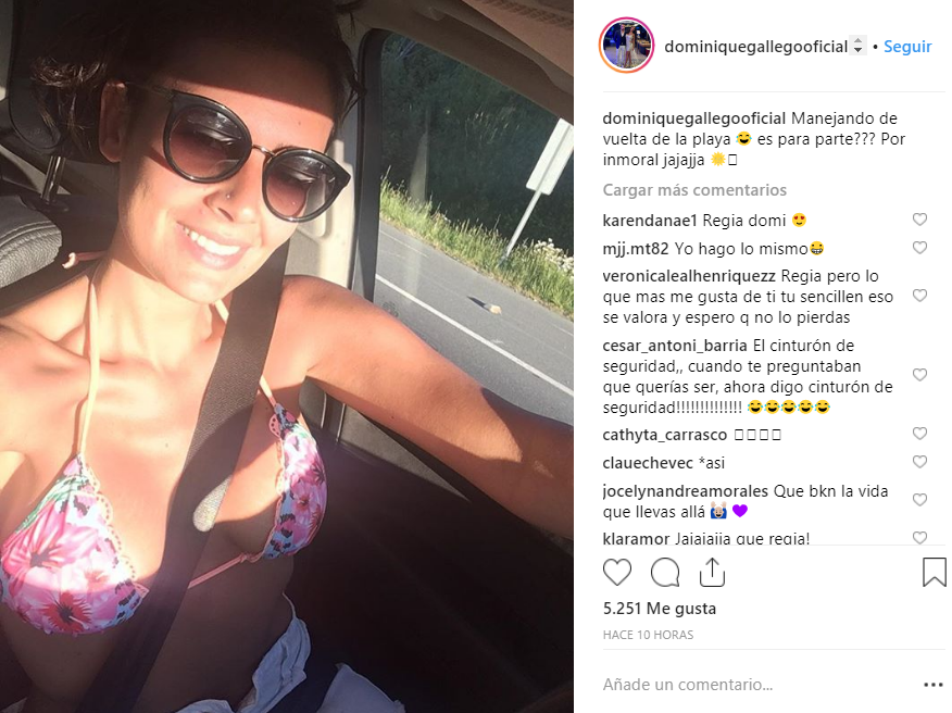 “Manejando de vuelta de la playa. Es para parte??? por inmoral jajaja”, fue parte de lo que escribió a través de sus redes sociales, donde aparece manejando en bikini.