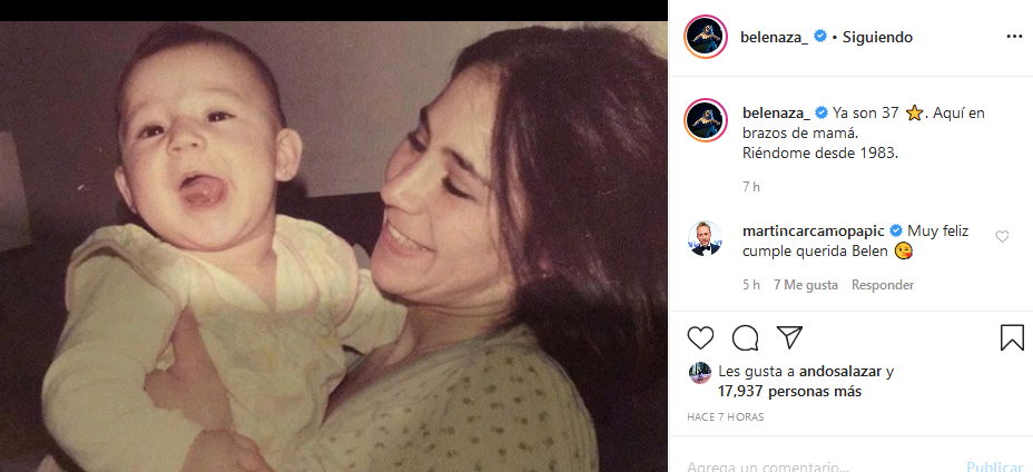 Este 5 de junio, la comediante celebra sus 37 años de edad y a raíz de esto quiso compartir un emotivo registro de su infancia, donde aparece ella en los brazos de su madre. "Ya son 37 ⭐️. Aquí en brazos de mamá. Riéndome desde 1983", escribió la también participante de "Bailando por un Sueño".