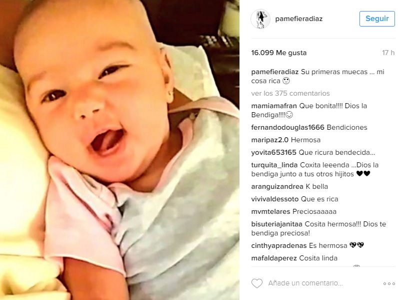 "Sus primeras muecas... mi cosa rica", escribió Pamela Díaz junto a la fotografía que ya tiene más de 16 mil me gusta. ¡Es que los bebés son lo más adorable del mundo!