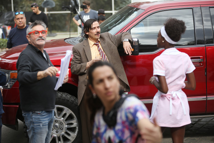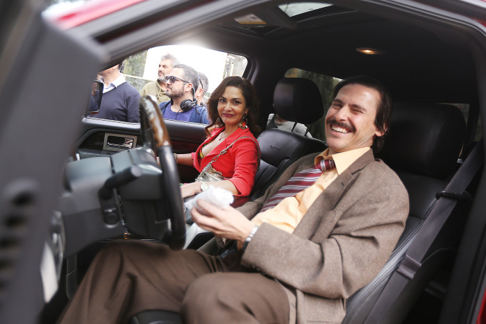 Espinoza luce un look radicalmente distinto al del médico que encarna en "Pacto de sangre". Una prominente barriga, pelo más largo y peinado hacia un lado, y bigote, son parte de la caracterización de su nuevo personaje.
