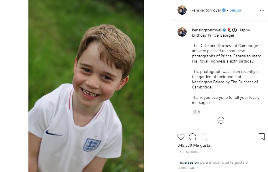 El pequeño príncipe, tercero en la línea de sucesión al trono británico, cumplió 6 años y para celebrarlo sus padres compartieron en redes sociales una serie de imágenes inéditas de George, las que fueron tomadas por la mismísima Kate en los jardínes de su casa en el palacio de Kensignton.
