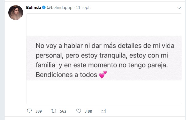 Sin embargo, la relación llegó a su fin y al parecer no terminaron en la mejor de las buenas ondas. Porque durante los últimos, tanto Belinda como Criss han publicado en sus redes sociales mensajes que nos dejan entrever que no quedaron como amigos.