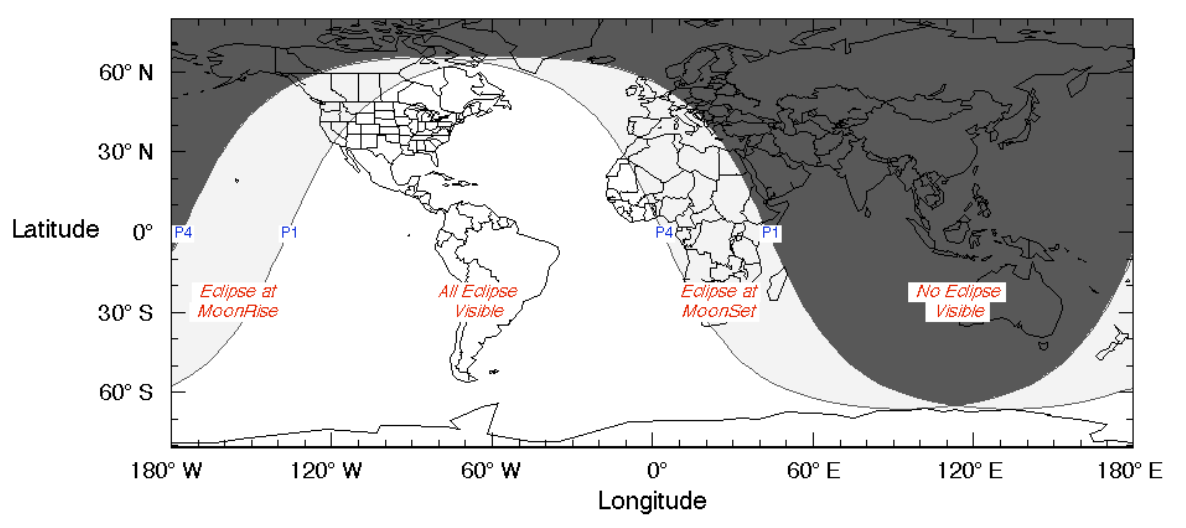En África, el eclipse será visto en todas sus zonas, mientras que una parte algunos países del oeste del Viejo Continente podrán disfrutar de esta manifestación en los cielos.