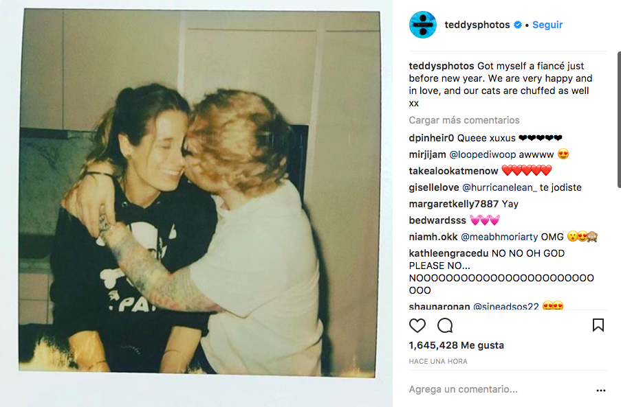 El intérprete de "Perfect" ya había confesado sus intenciones de casarse y formar una familia con ella pero ahora lo oficializó con una tierna foto. "Con mi prometida justo antes de año nuevo. Estamos muy contentos y enamorados, y nuestros gatos también lo están", escribió en su cuenta oficial.