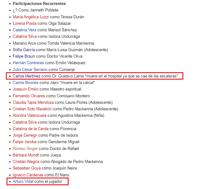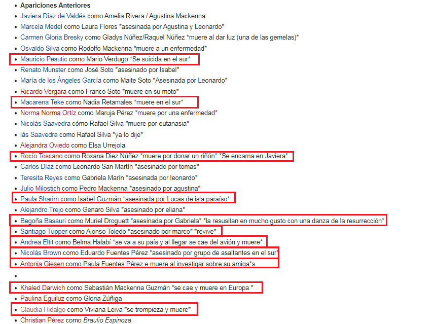 En el sitio web se puede apreciar cómo en la parte del elenco de la teleserie, el destino de sus personajes ha sido cambiado y de manera bastante trágica.