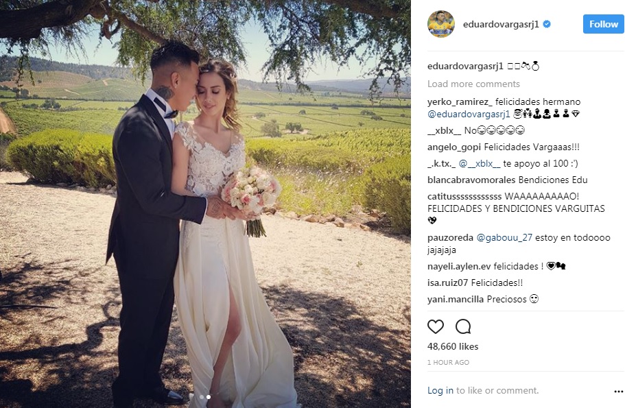 Hace un par de meses el delantero de la selección chilena Eduardo Vargas compartía a través de sus redes sociales que se casaba con su novia, la modelo brasileña Daniela Colette y ahora compartieron una gran noticia.