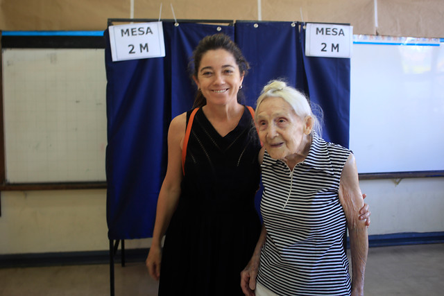 A las 8 de la mañana comenzaron a funcionar las mesas para las votaciones de esta segunda vuelta y esta mujer de 103 años asistió a votar en Las Condes. Ella, representa a una gran mayoría de personas adultas que asisten a votar pese a sus dificultades físicas.