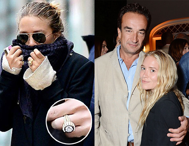 Mary Kate y Olivier, quien es hermanastro del ex presidente de Francia Nicolás Sarkozy, se comprometieron en marzo de 2014, durante unas románticas vacaciones en Jamaica, en las que el empresario francés sorprendió a la gemela con un anillo de diamantes de 4 kilates acompañado de 16 zafiros, avaluado en 81 mil dólares.