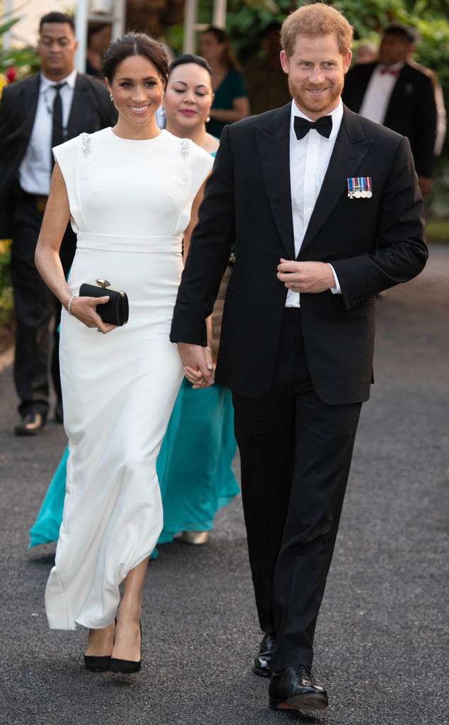 Mientras Meghan Markle y el Príncipe Harry se encuentran todavía en su gira real que los tiene en el Reino de Tonga, la duquesa de Sussex se lució con un elegante look de punta en blanco en una cena formal, que complementó con el anillo verde agua, que perteneció a la madre de su esposo, Diana de Gales.